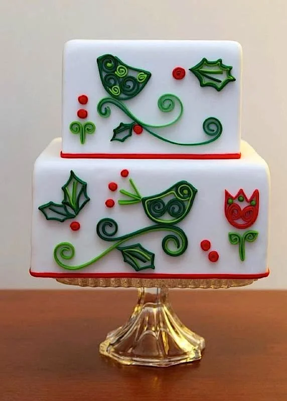 Is this not the sweetest, artsiest bit of edible quilling you've ever seen? So perfect! Now I want to try quilling again just to make this pattern into next year's Christmas cards.