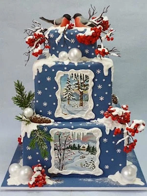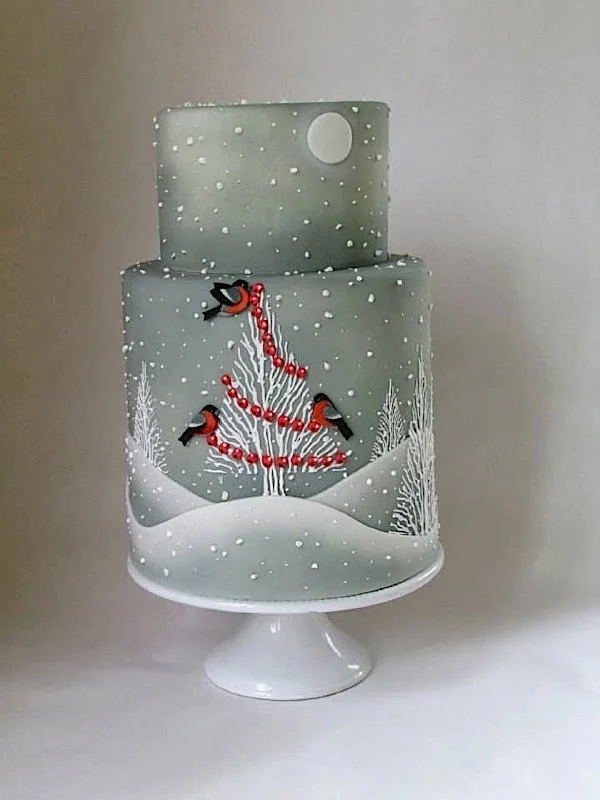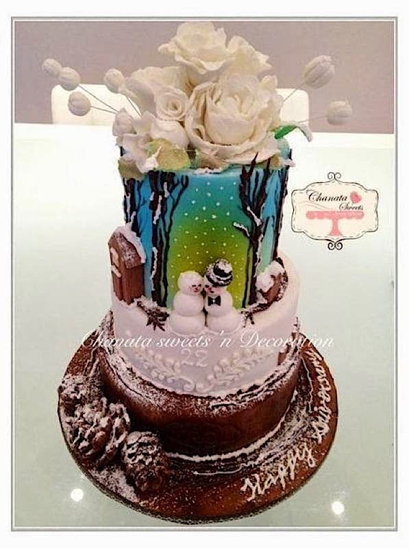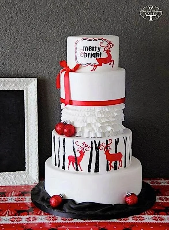 That pop of lime green in the middle with the teal is just about the cheeriest thing ever, and I love the dusting of powered sugar snow on the chocolate pinecones. And did you notice this is an anniversary cake? SO SWEET.